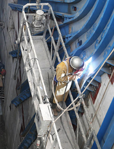 高空焊接項目施工難度大,風(fēng)險性高,因此做好安全保護工作是非常重要的,工人佩戴防墜器進(jìn)行安全保護,防止發(fā)生高空墜落。